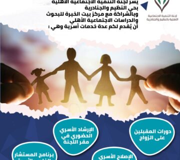 إطلاق 4 خدمات أسرية جديدةAdminمارس 2, 2021يسر لجنة التنمية الاجتماعية الأهلية بالنظيم والجنادرية بالشراكة مع مركز بيت الخبرة للبحوث والدراسات أن تقدم لكم عددا من الخدمات الأسرية ضمن مشروع تكوين ... اقرأ أكثر