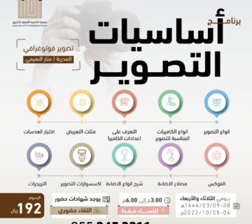 النظيم والجنادرية تنظم برنامج بعنوان “أساسيات التصوير”Adminأكتوبر 2, 2022ما أجمل أن تنظر إلى العالم من حولك بشكل جديد من خلال التعرف على أسرار التصوير الفوتوغرافي. وكما هو معلوم أن التصوير الفوتوغرافي أصبح ... اقرأ أكثر